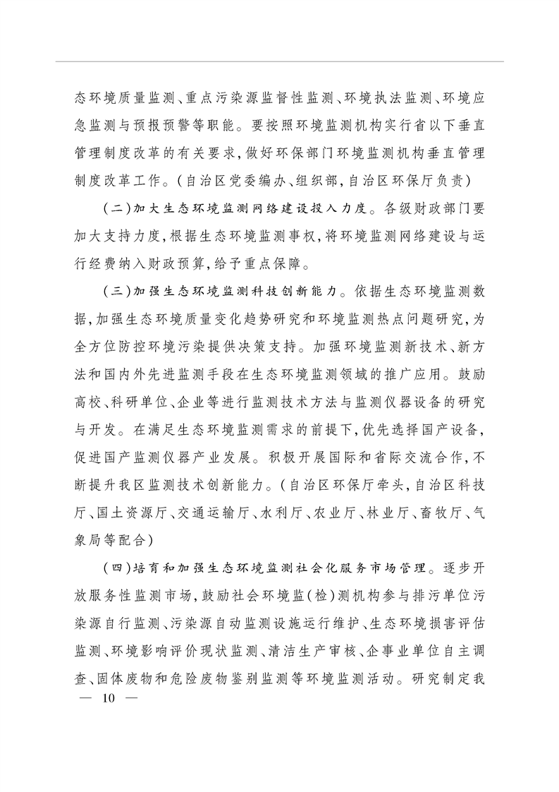 关于印发自治区生态环境监测网络建设实施方案的通知